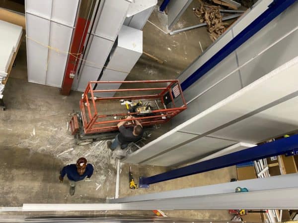 Not only that, but due to Porta-King’s commitment to quality in using pre-engineered components and prefinished panel surfaces, there was no risk of contamination issues that might have resulted from less-refined industrial standards. Porta-King used Versa-King systems for the structural integrity of the 22’ walls and—to ensure long-lasting durability and service—use clear satin anodized aluminum material for framing to prevent shedding and corrosion.